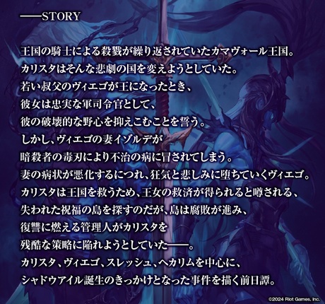 カリスタ、ヴィエゴ、スレッシュ、ヘカリムなど、人気チャンピオンが多数登場する。“シャドウアイル”の誕生秘話となる。